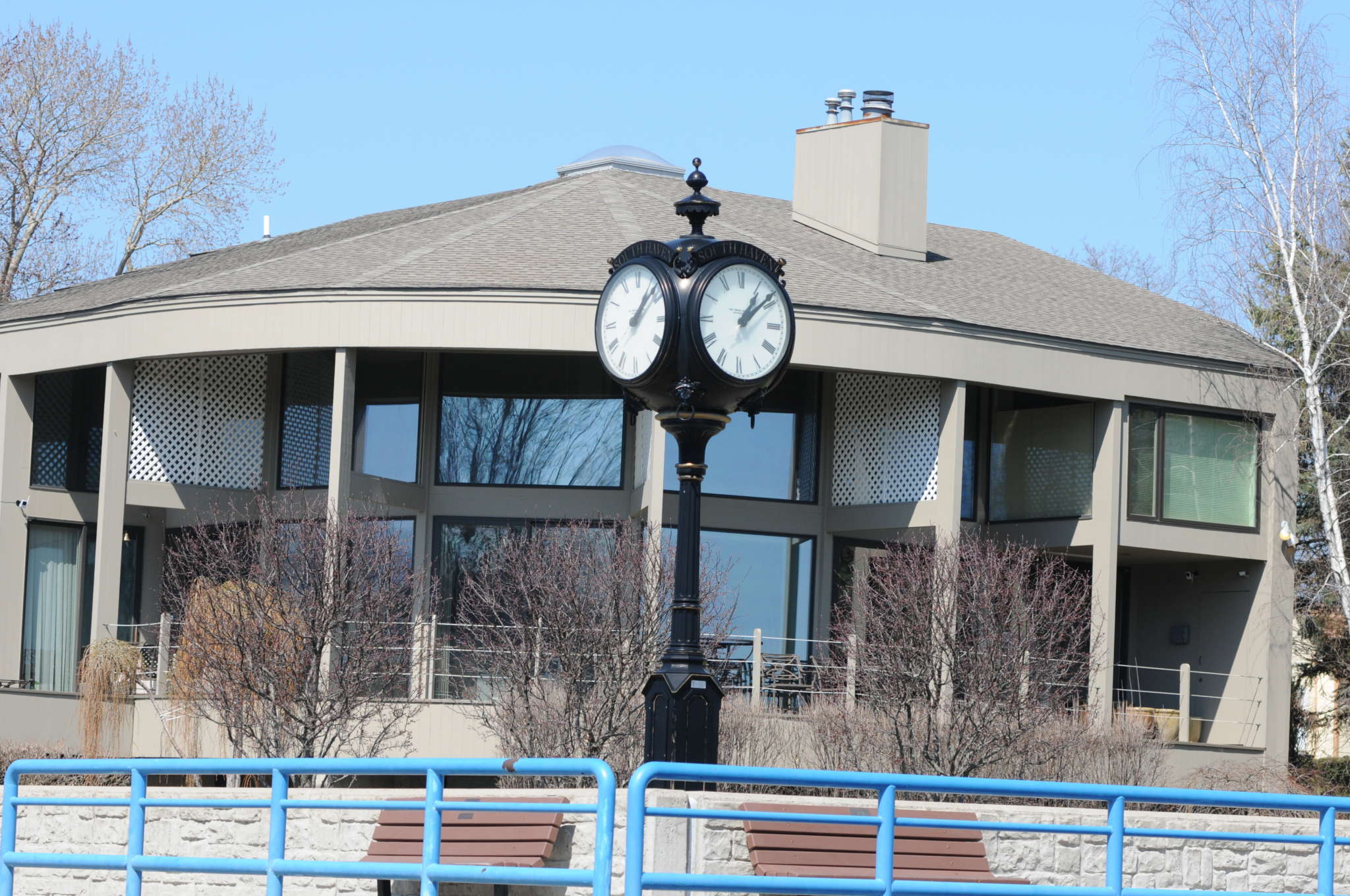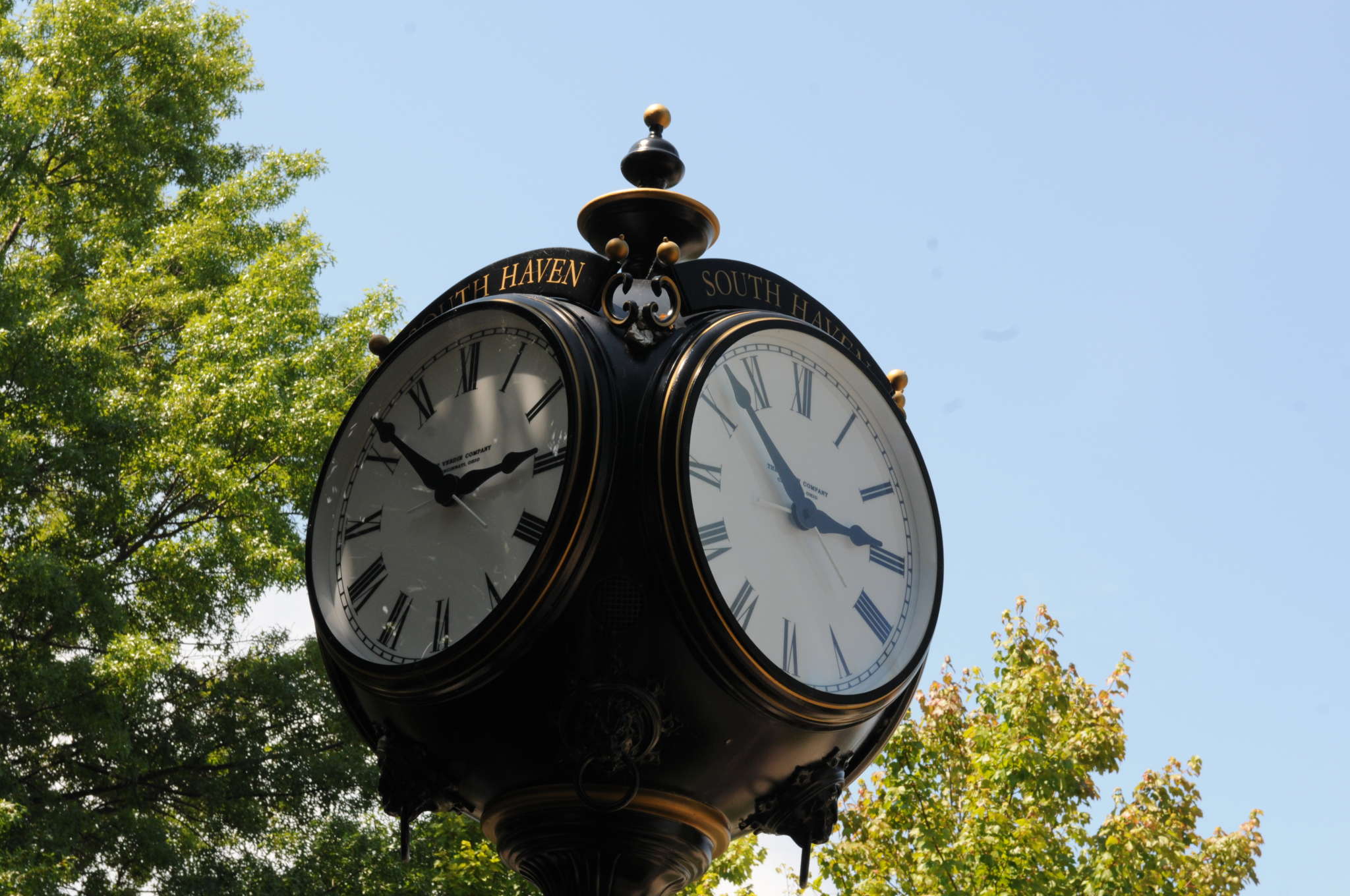 • Four-Faced Harbor Walk Clock on the Black River.